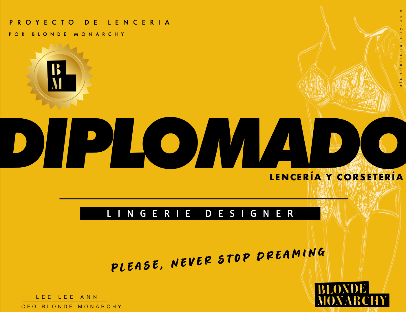 Nuestro Diplomado de Lencería y Corsetería es un programa 100% en línea de 12 meses que te lleva de la idea a la realidad