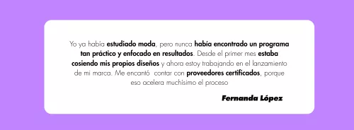 Contarás con materiales, proveedores y una metodología probada por alumnas que ya lanzaron sus marcas.